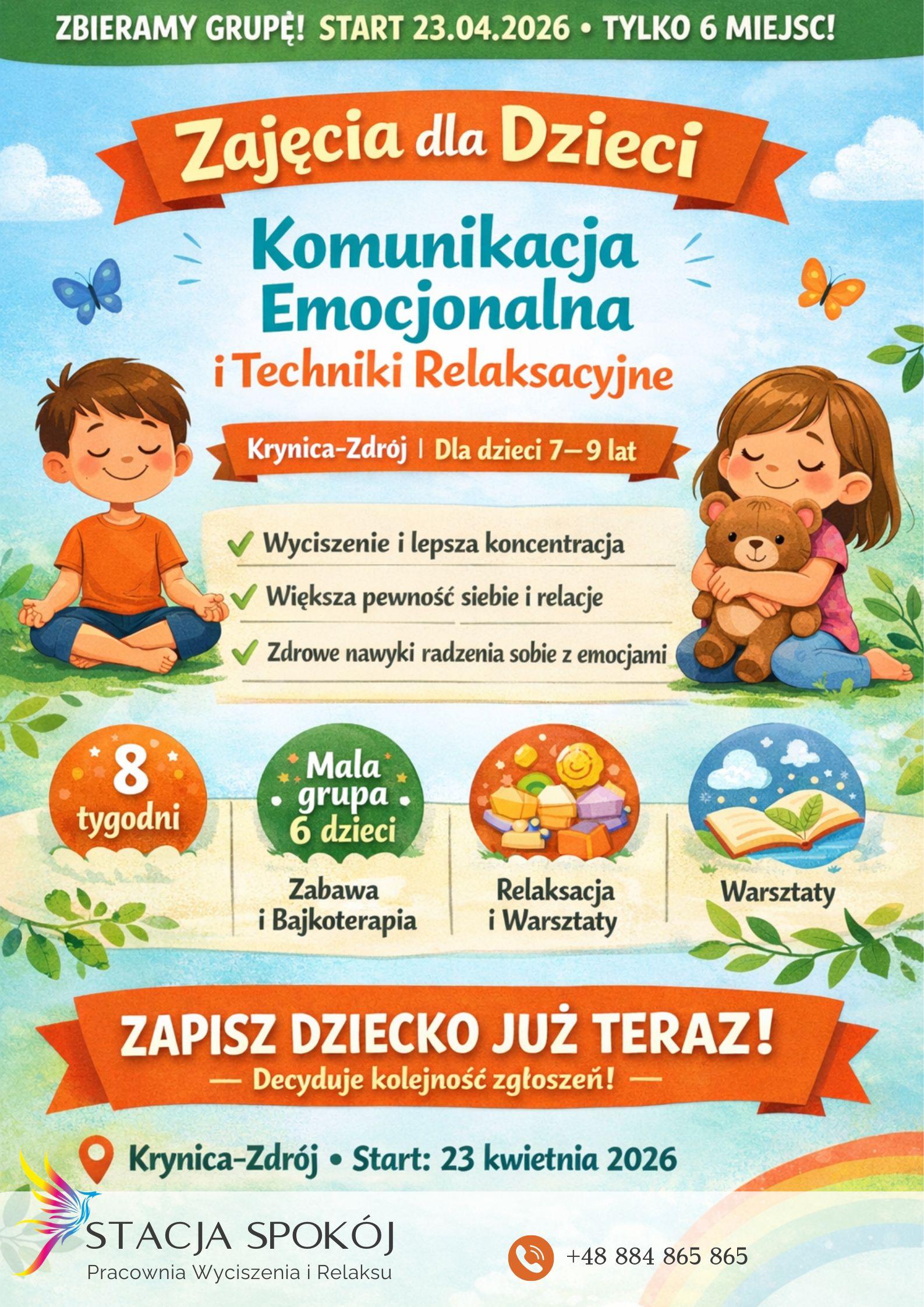 Rusza nowa edycja Zajęć z Komunikacji Emocjonalnej i Technik Relaksacyjnych dla dzieci w wieku 7–9 lat w Krynicy‑Zdroju.
